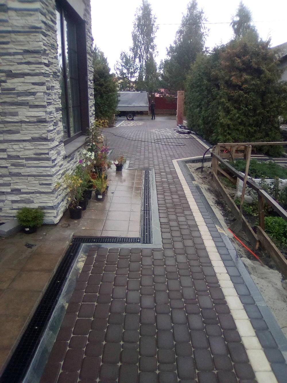 — Укладка брусчатки 166 м2,
